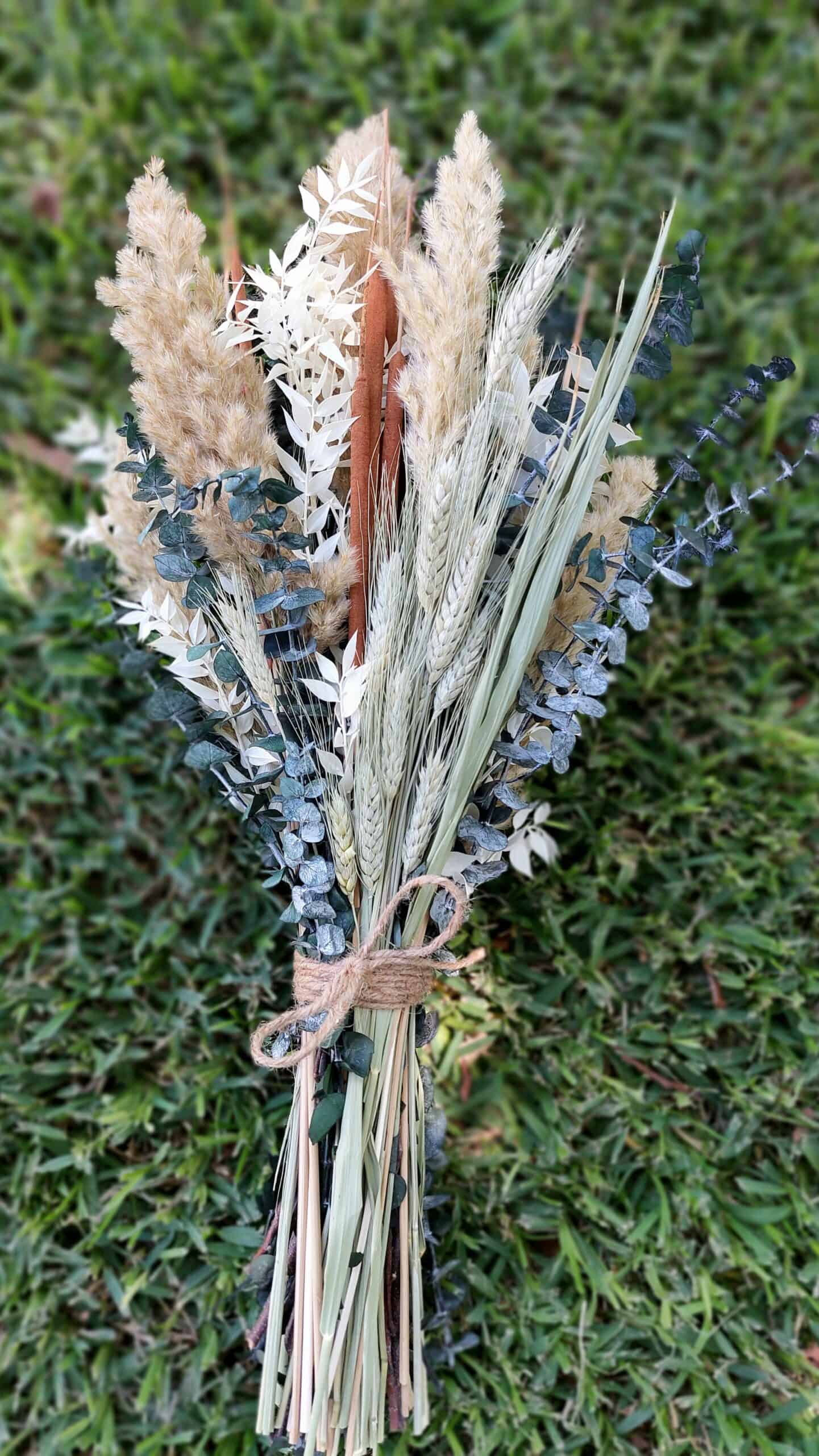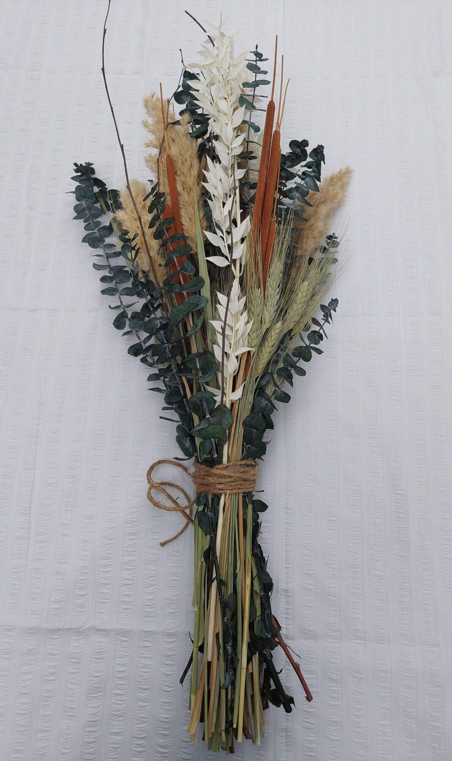 Dried Eucalyptus, Cattails, and Grasses Bouquet, Rustic Farmhouse Style
