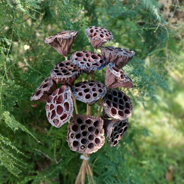 Dried Natural Lotus Pods – Small Heads on Stems – 12 Stems