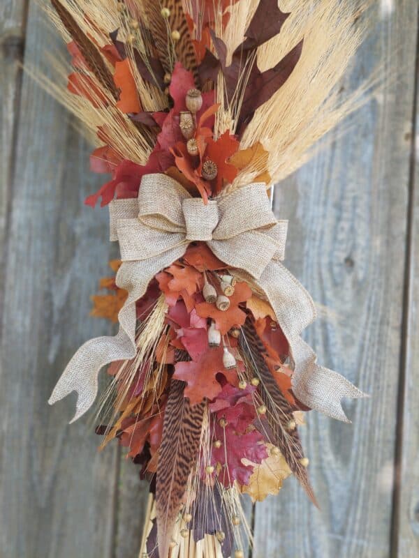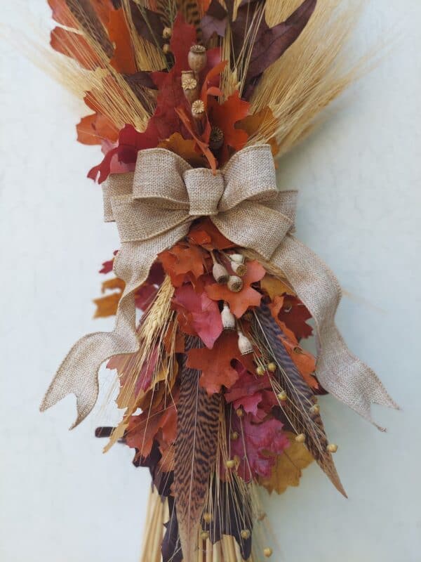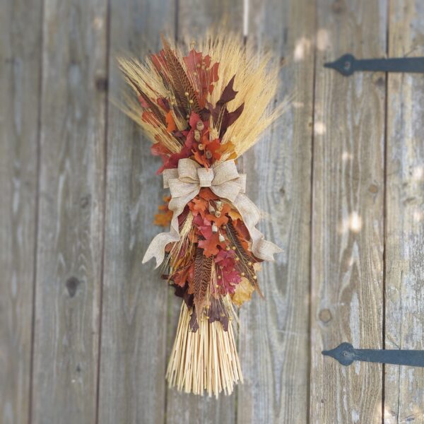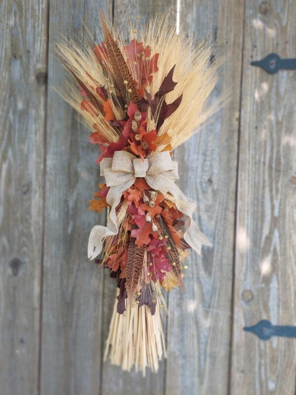 Add a touch of Fall to your home with this colorful Autumn wheat Sheaf swag.