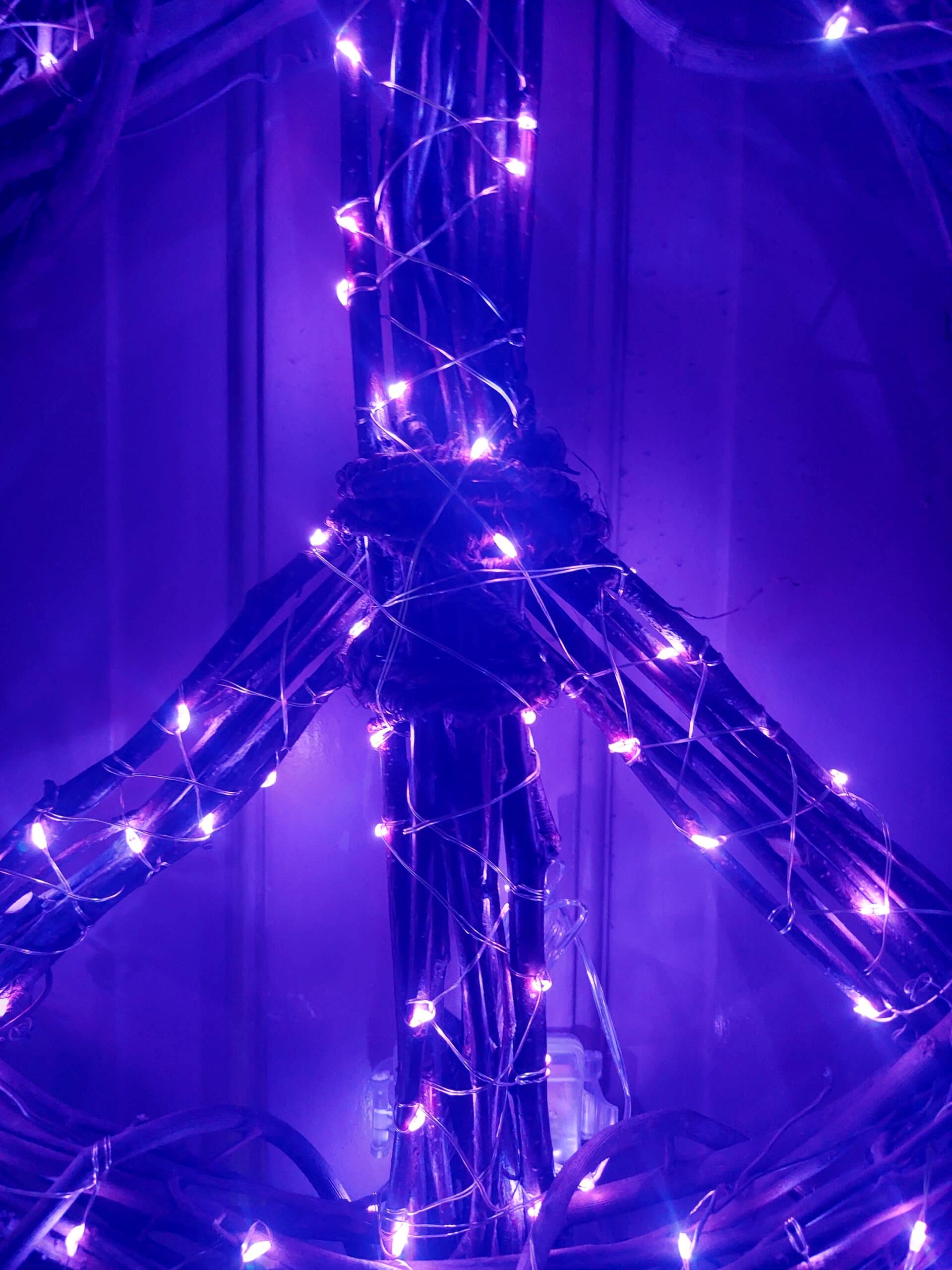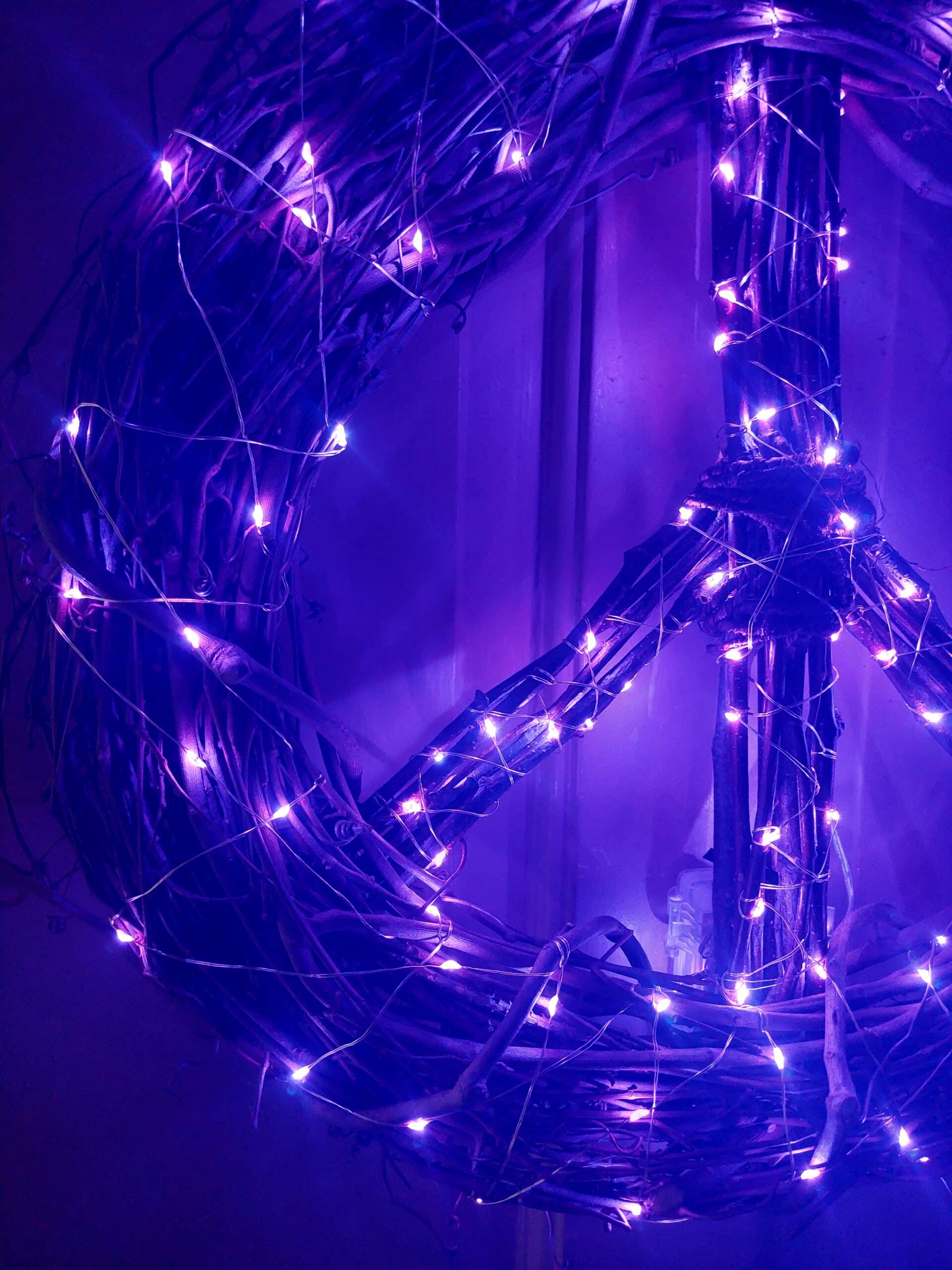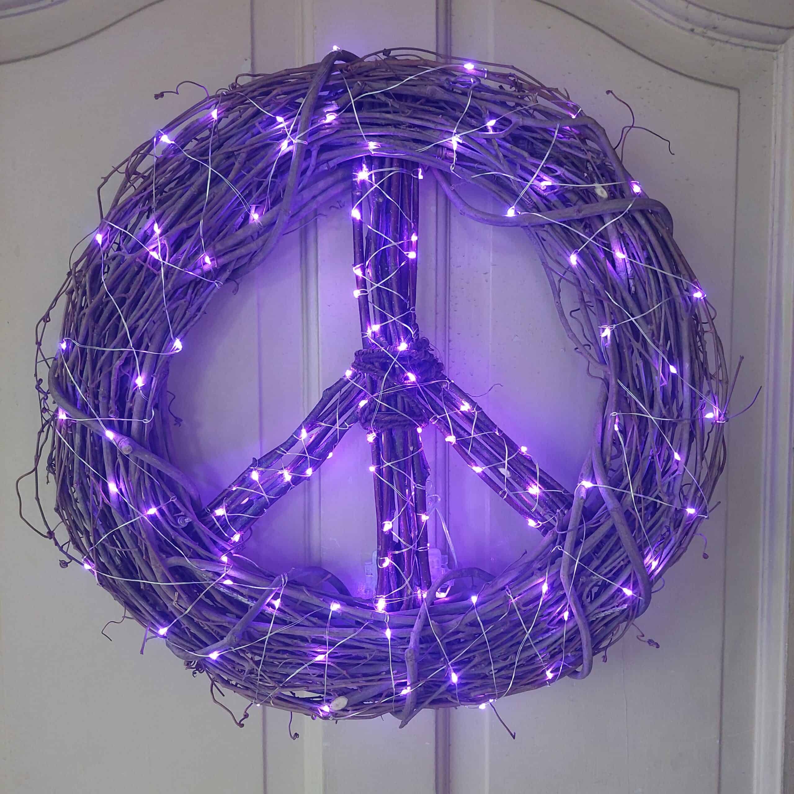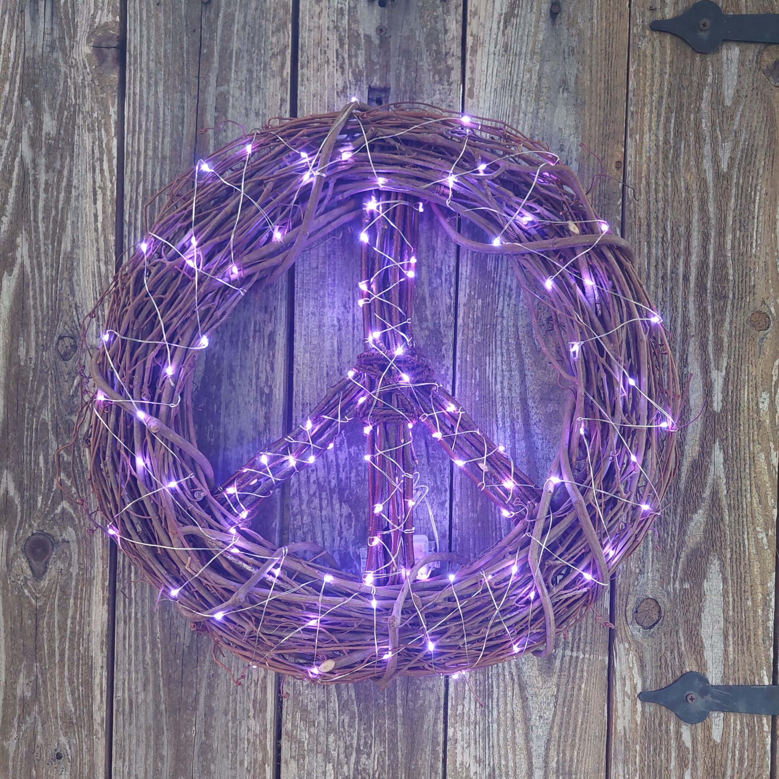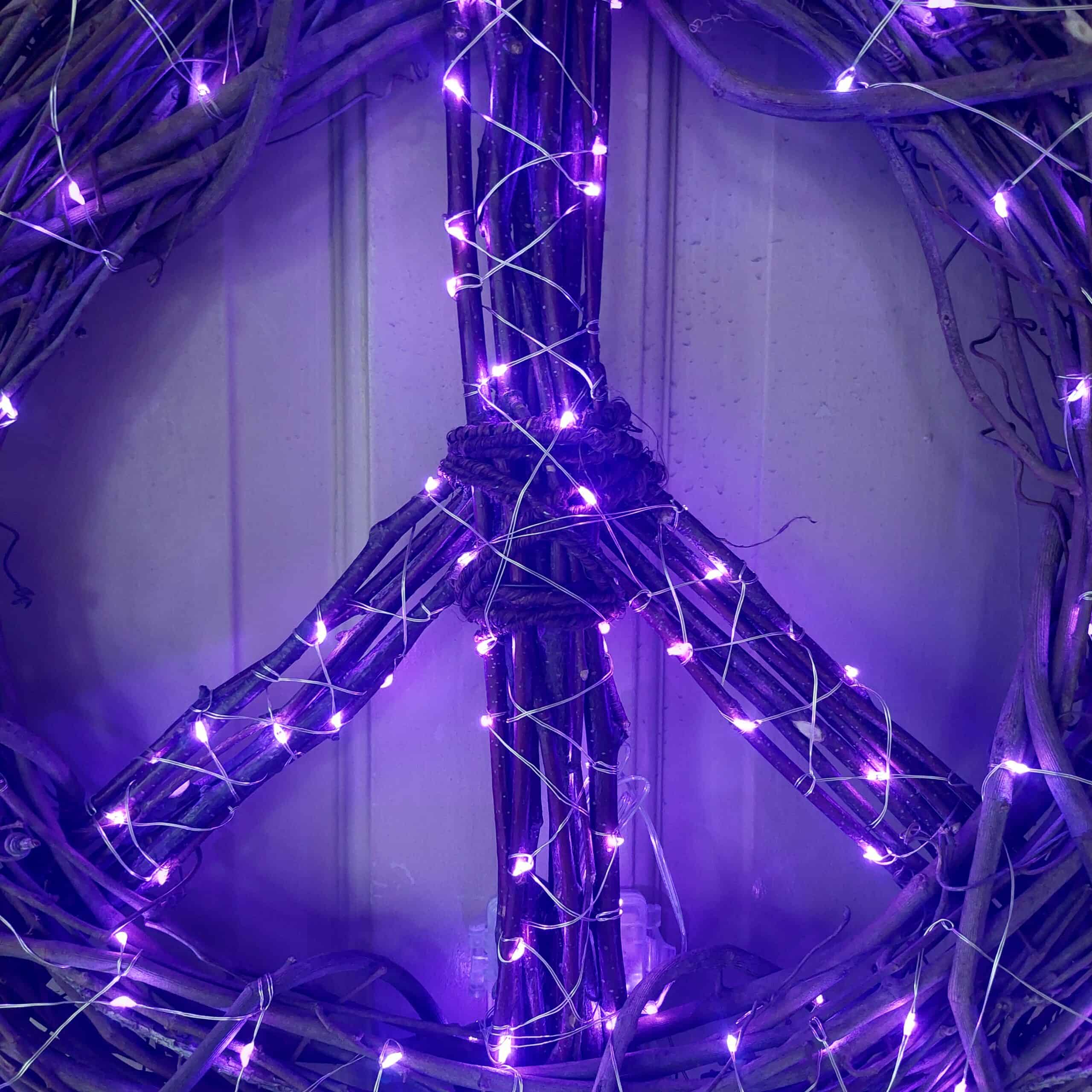 Peace Sign Wreath Purple Fairy Lights: Bohemian Decor