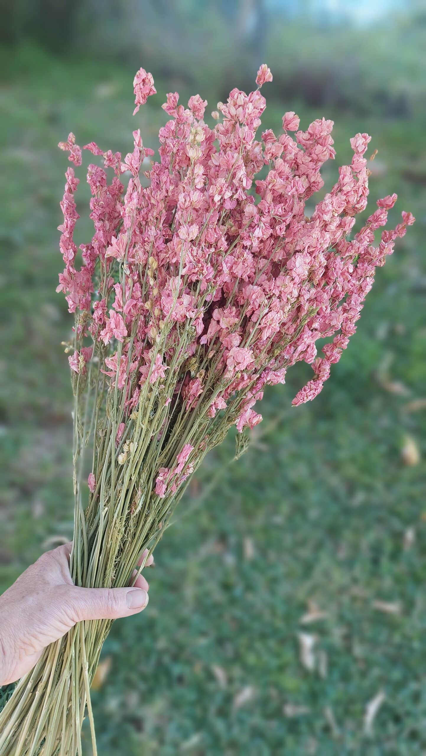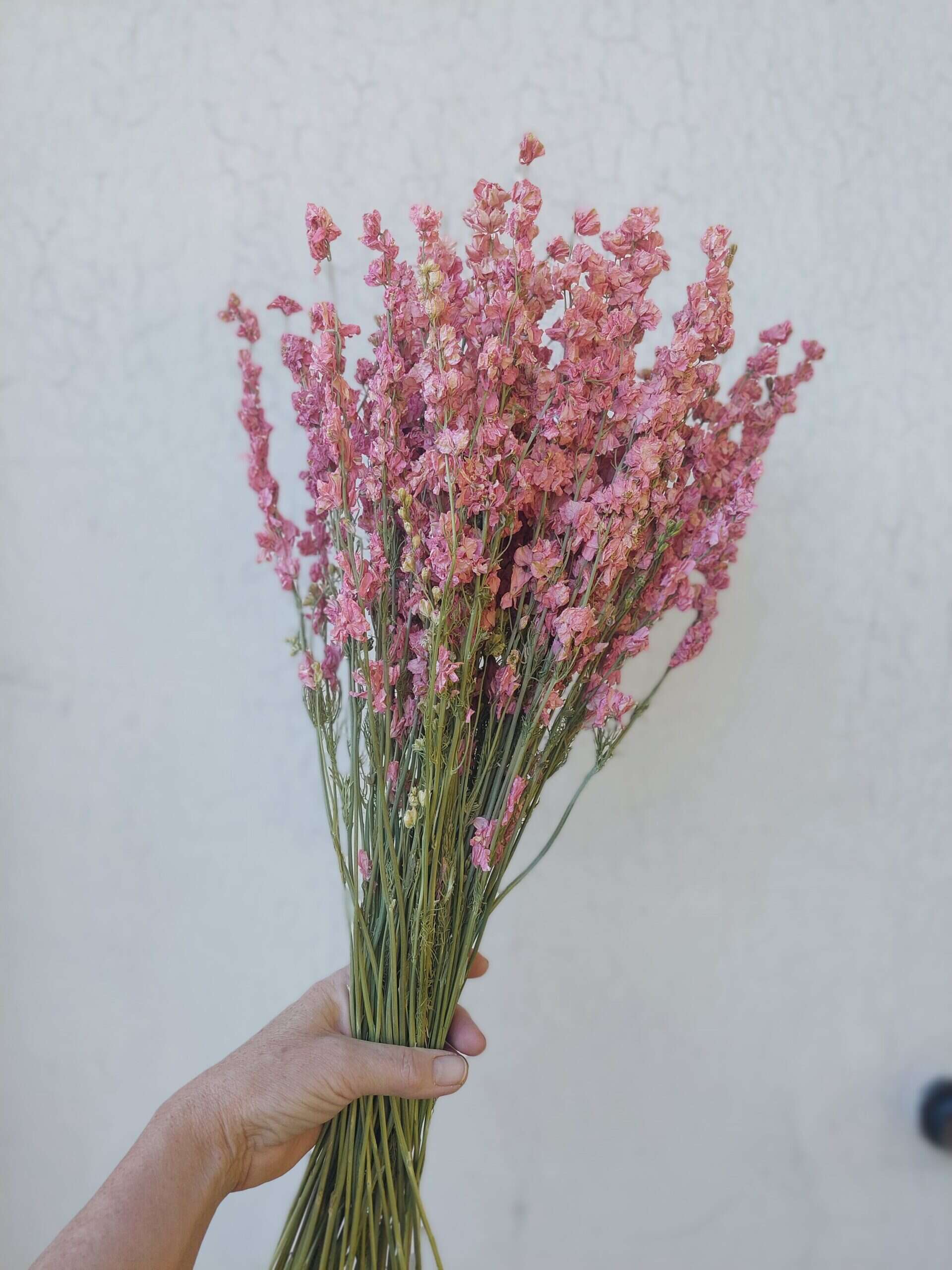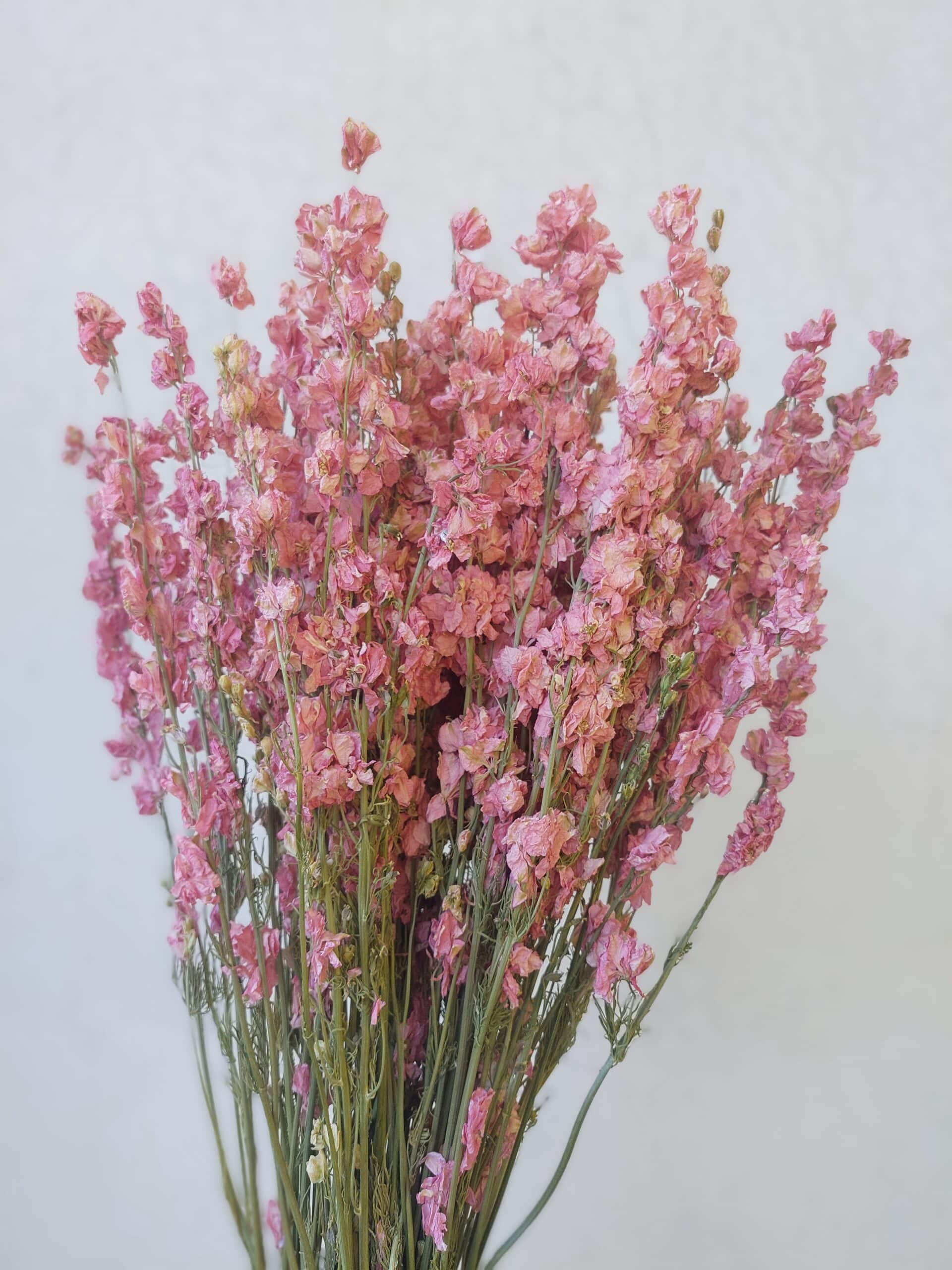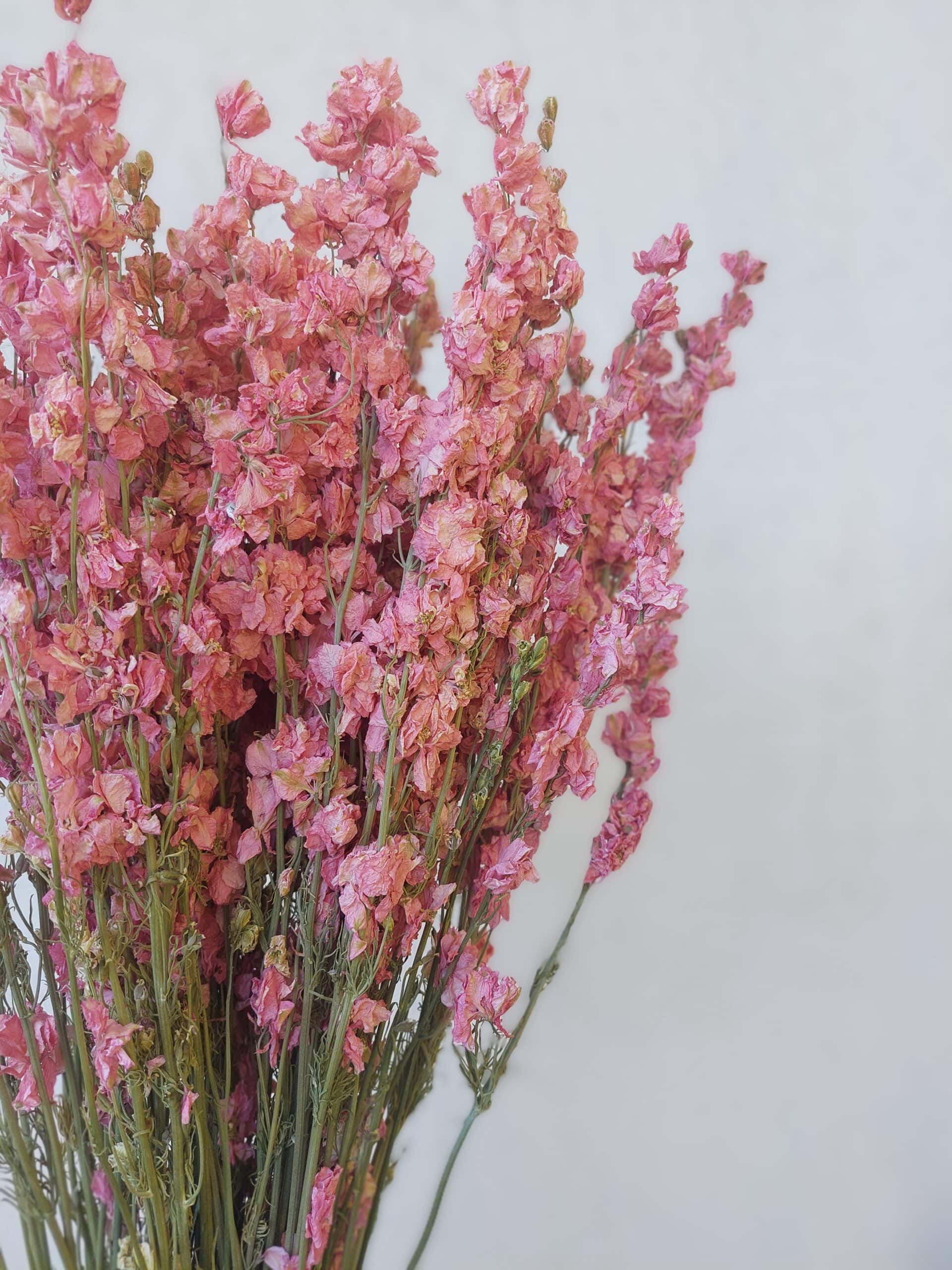 These tall dried pink larkspur wildflowers bloom in late Spring to early Summer. With various types in vibrant hues, add color to any setting. Our dried pink wildflowers are perfect for weddings, centerpieces, or bouquets. Add a fresh touch of Spring into your home all year round.